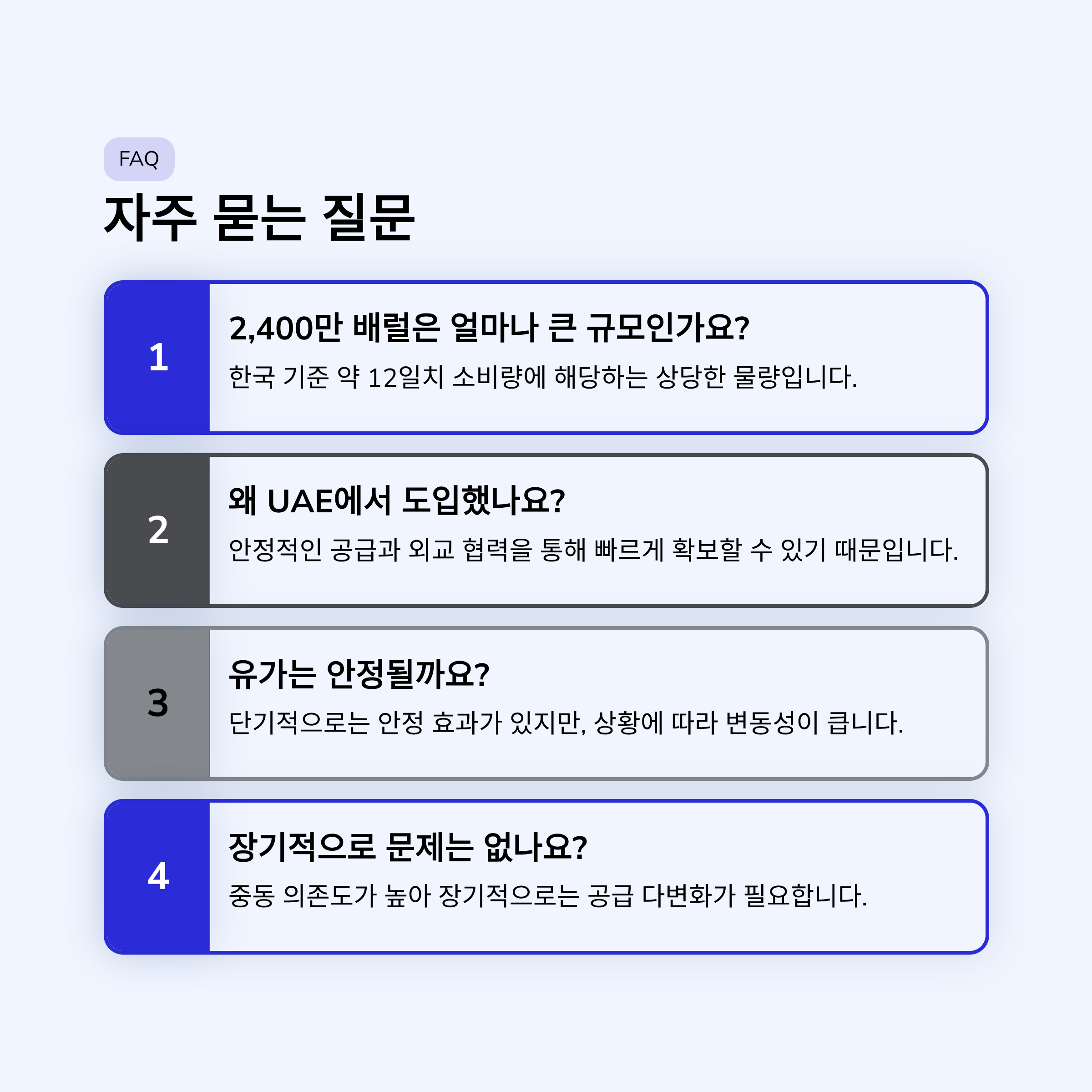 UAE 원유 도입 2400만 배럴 이유 (한국 에너지 위기 대응)