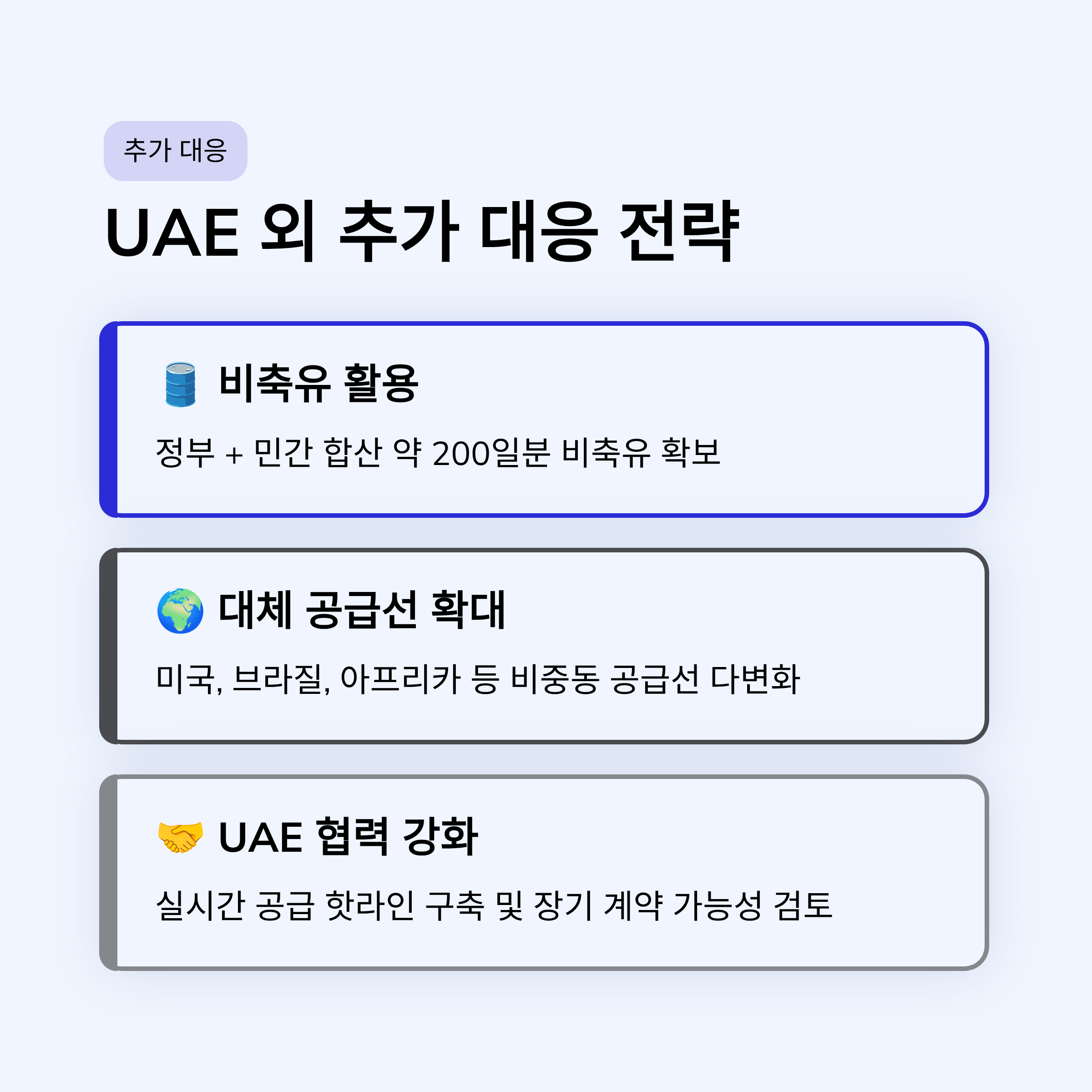 - 추가 1,800만 배럴 확보 (약 9일치)