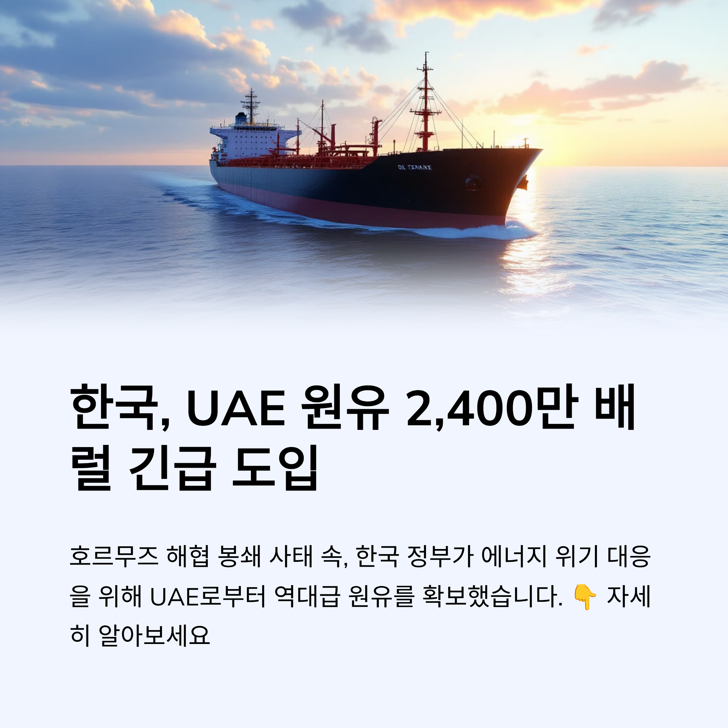 한국 정부가 UAE로부터 총 2,400만 배럴 원유를 긴급 도입하기로 결정했습니다.