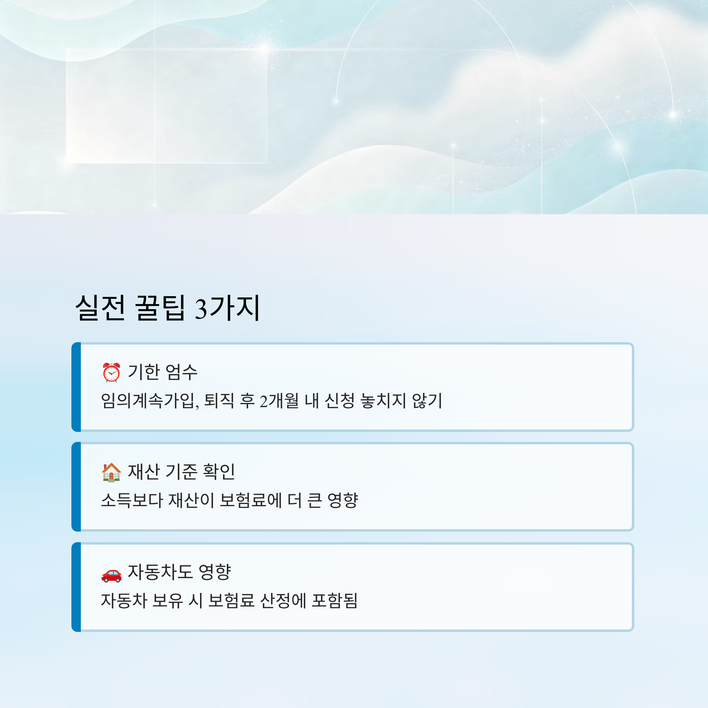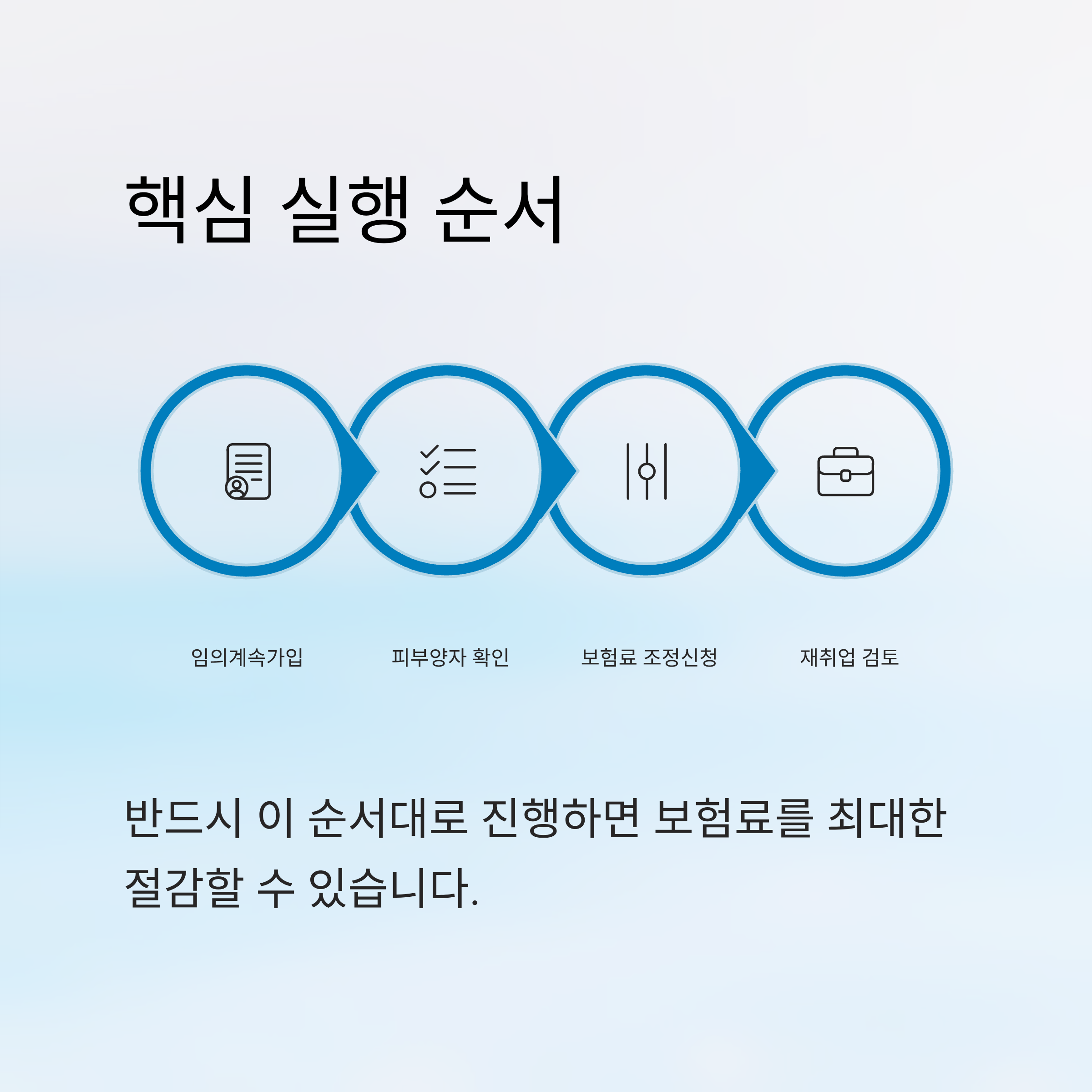 - 임의계속가입 → 피부양자 → 조정신청 순서 중요
