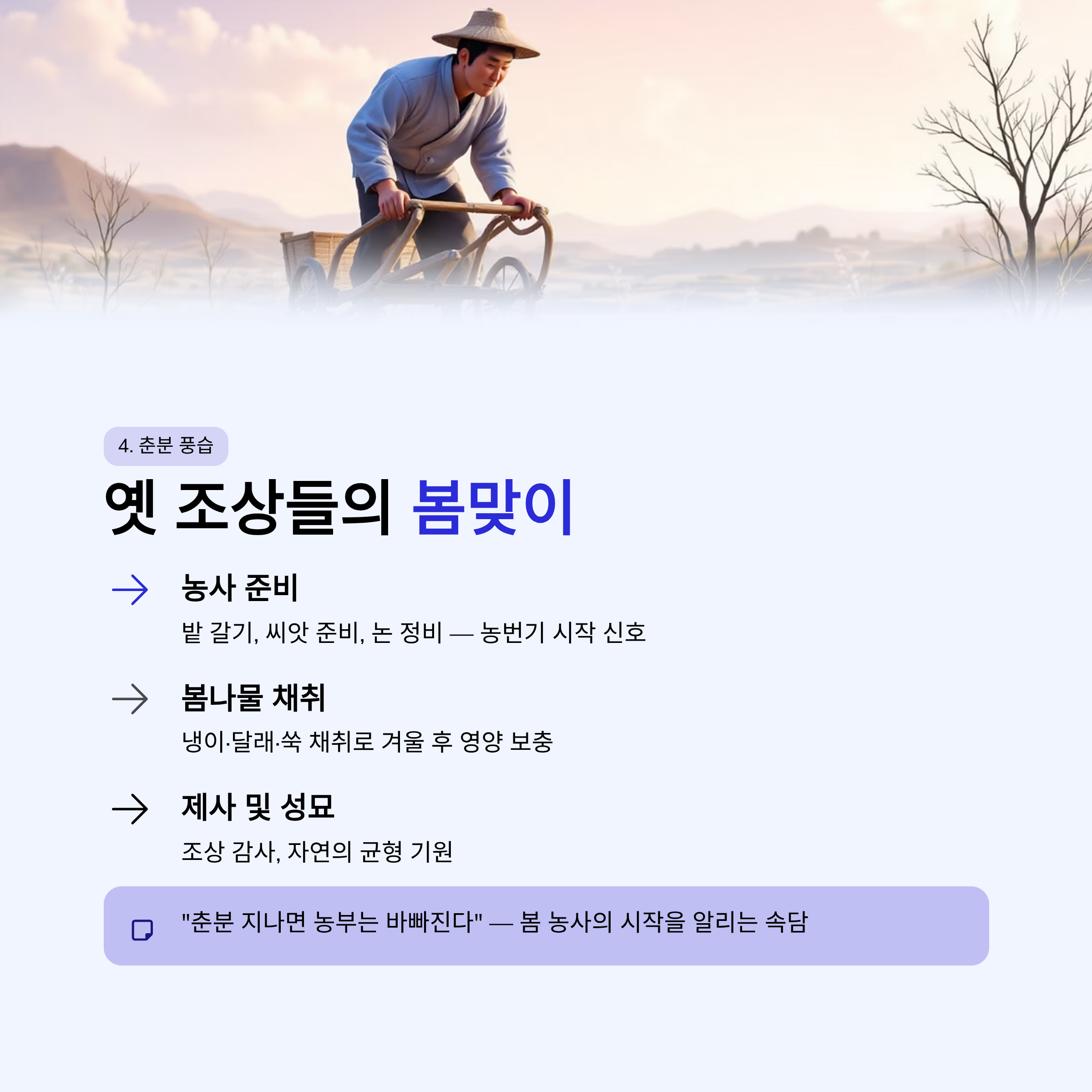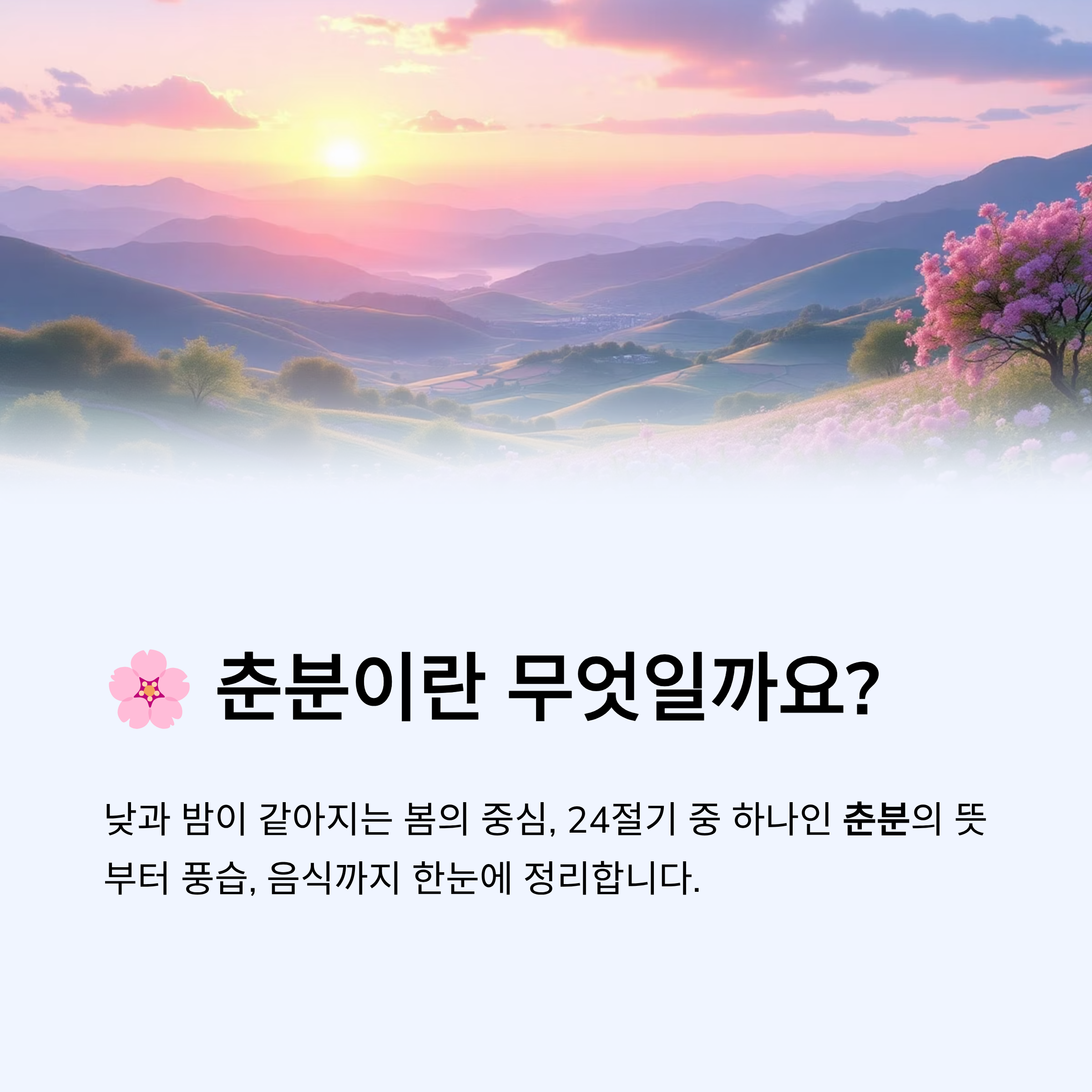 춘분은 24절기 중 하나로, 봄의 중심을 의미하는 중요한 절기입니다.