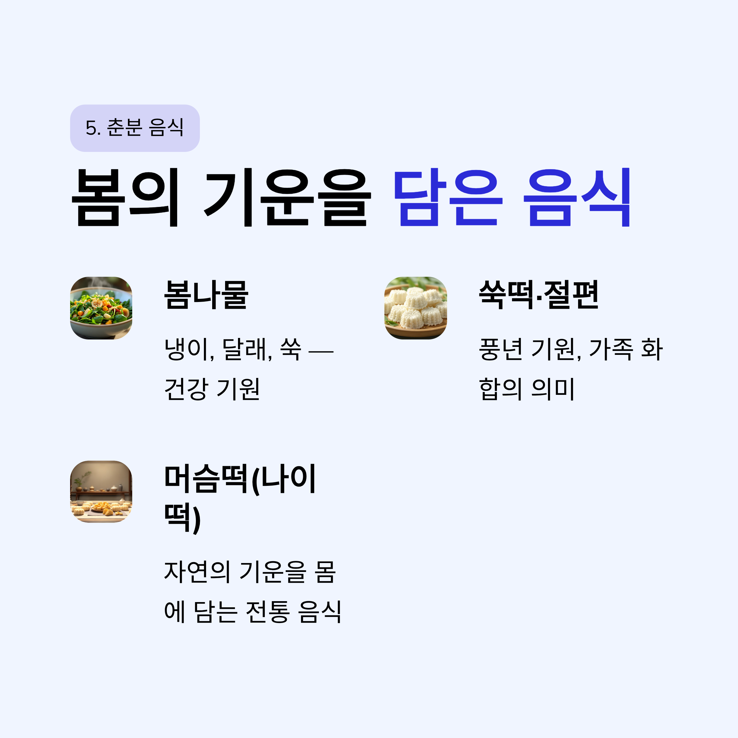 춘분에는 봄의 기운을 담은 음식이 중요합니다.