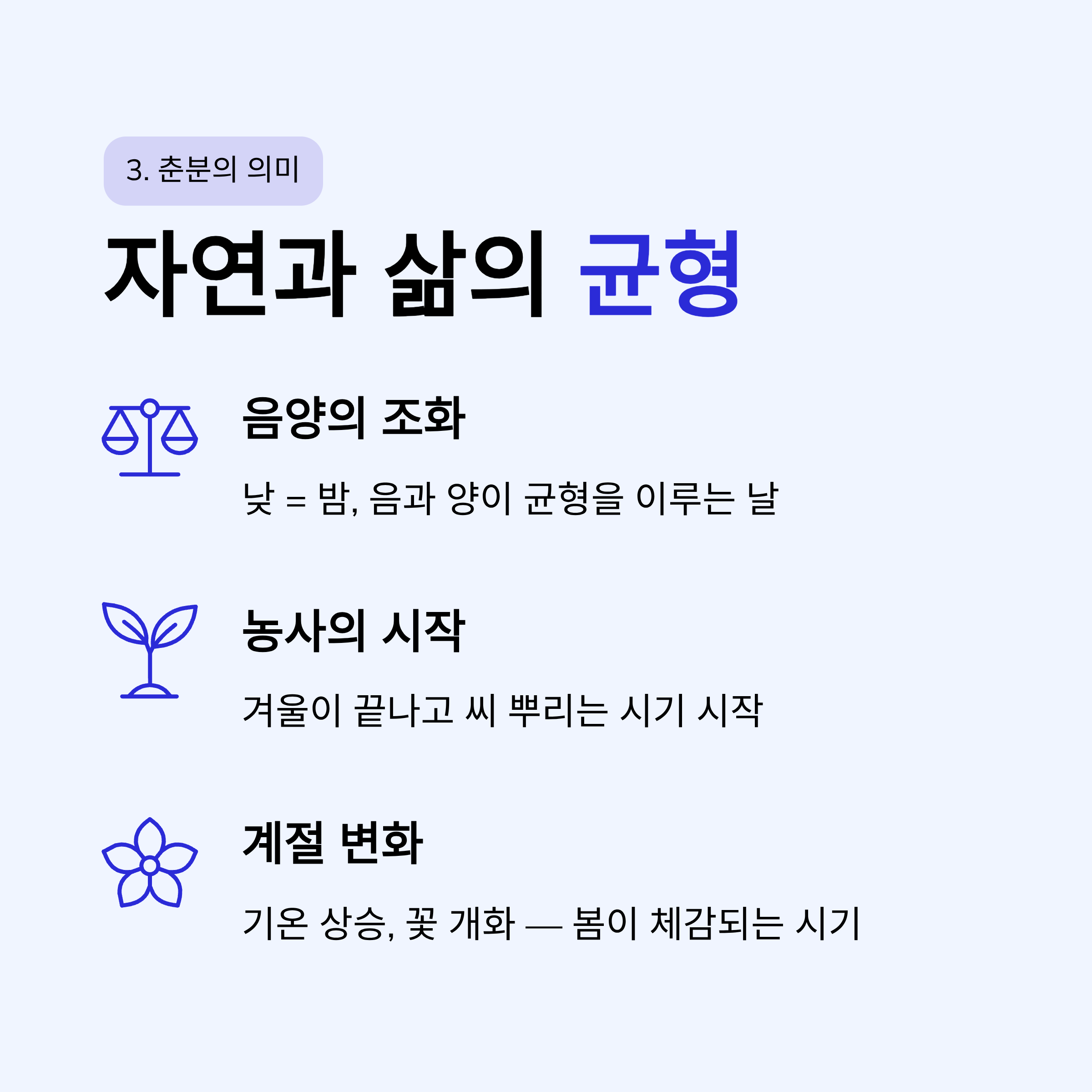 특히 낮과 밤의 길이가 거의 같아지는 시기로, 자연의 균형을 상징하는 날입니다.