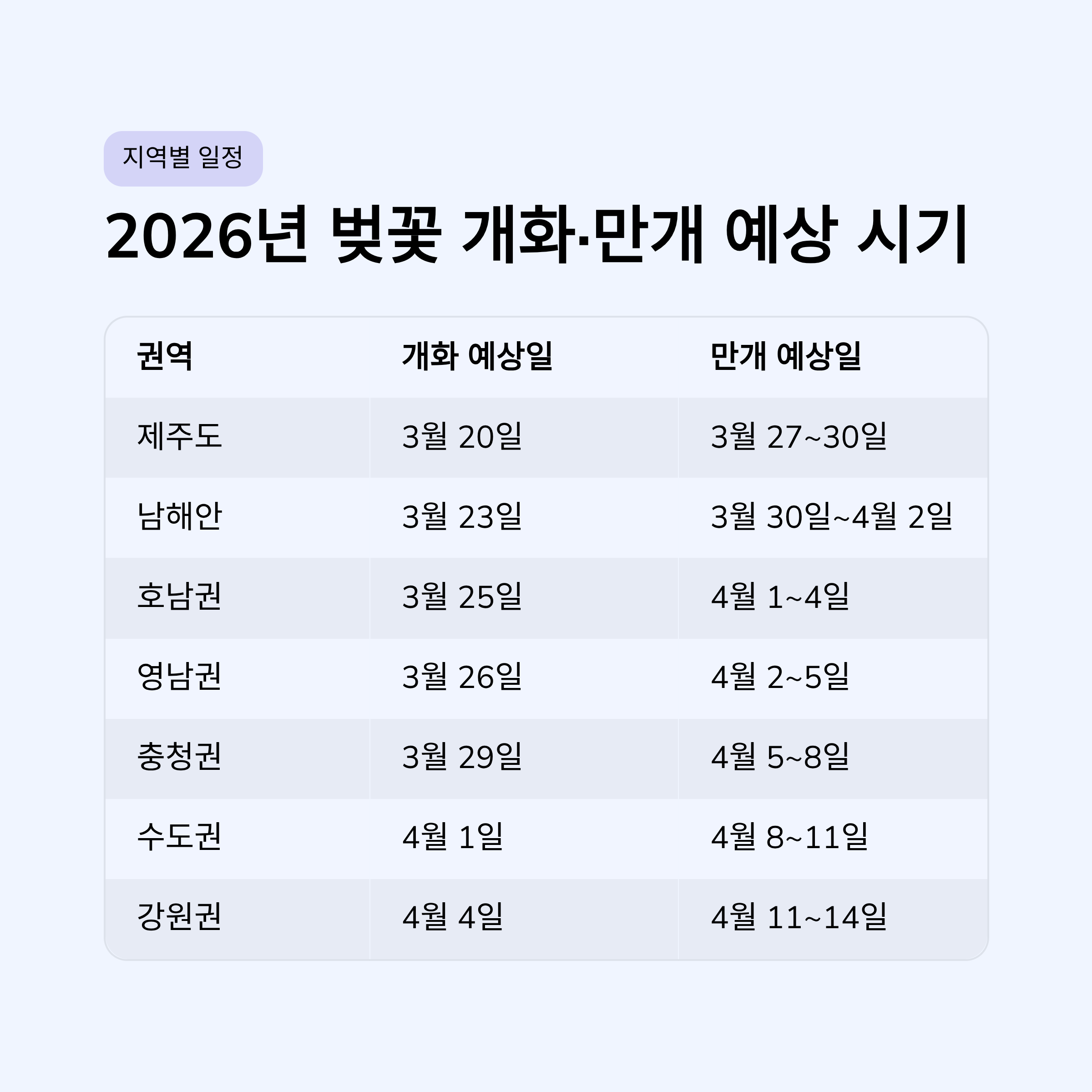 2026년 벚꽃 개화 흐름 한눈에 보기
