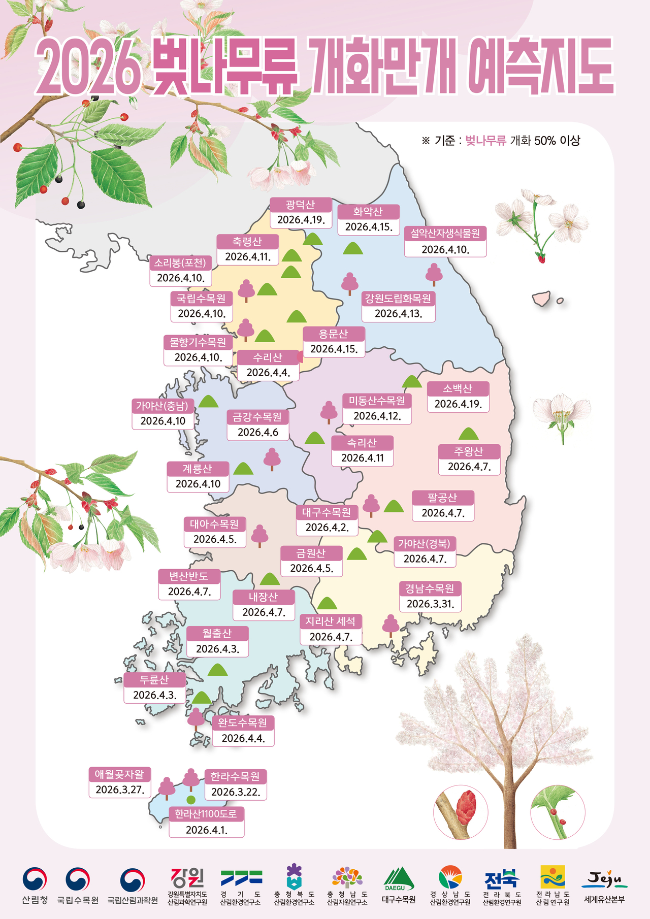 | 제주도 | 제주·서귀포 | 3월 20일 | 3월 27일~30일 |