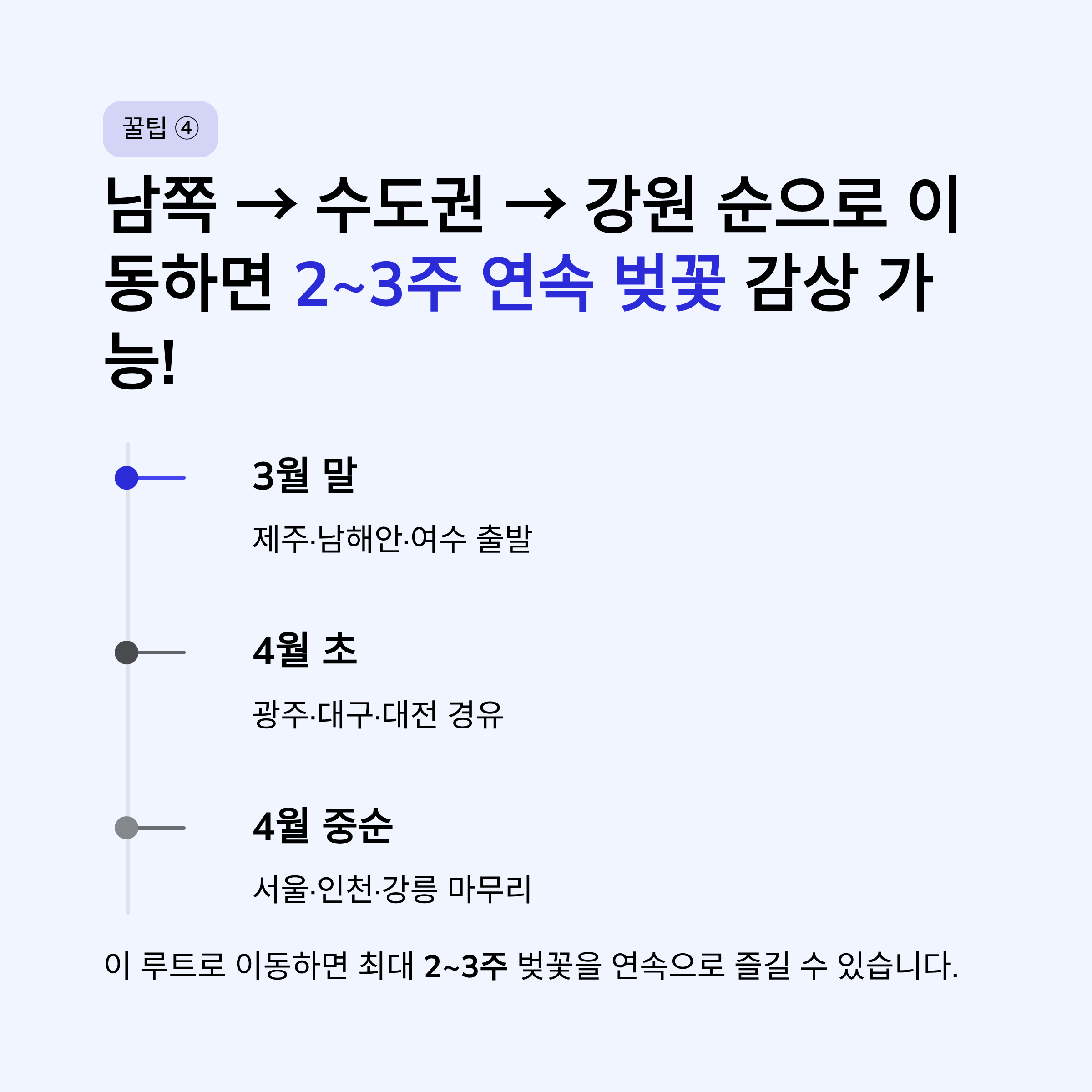 - 마지막: 강원 (4월 중순 절정)