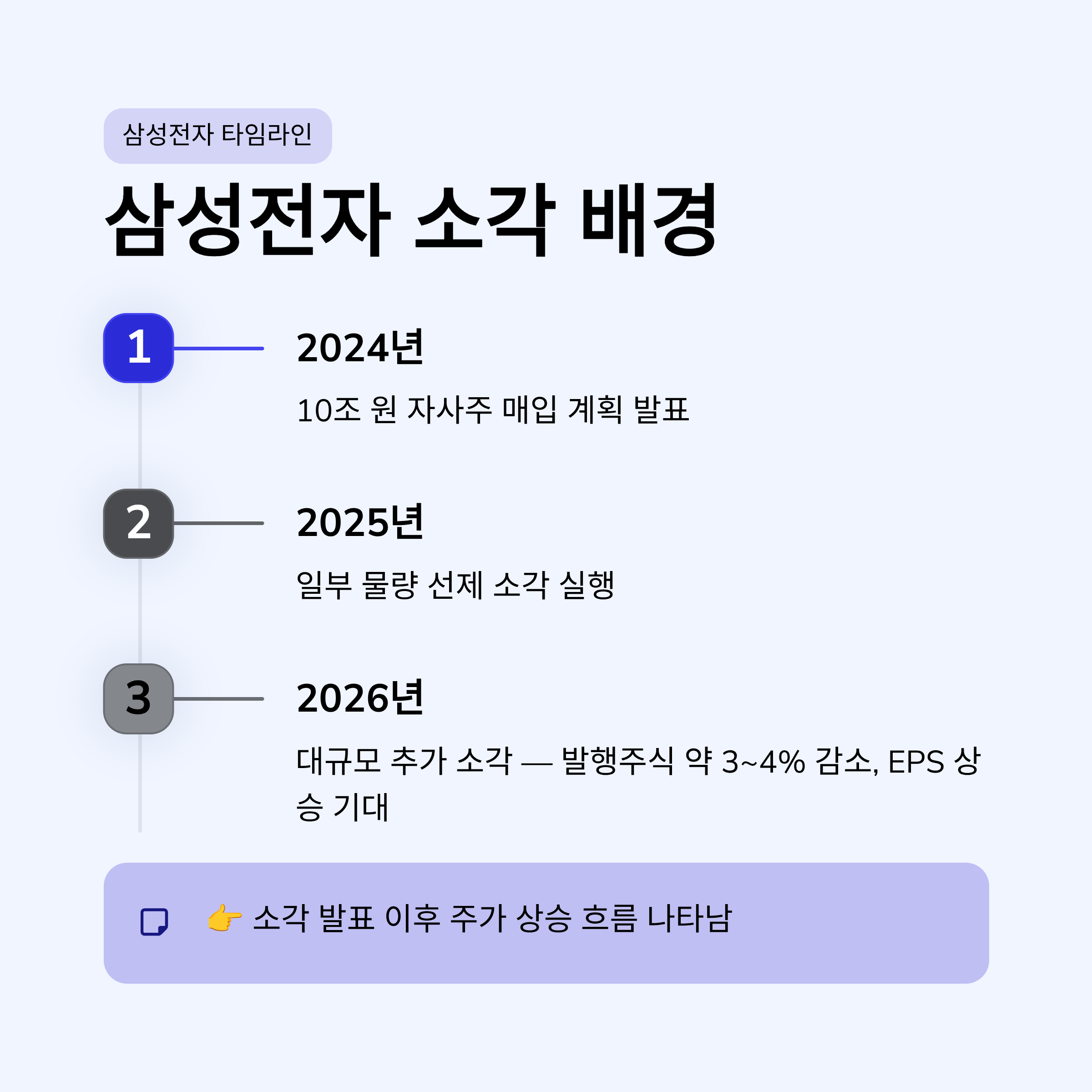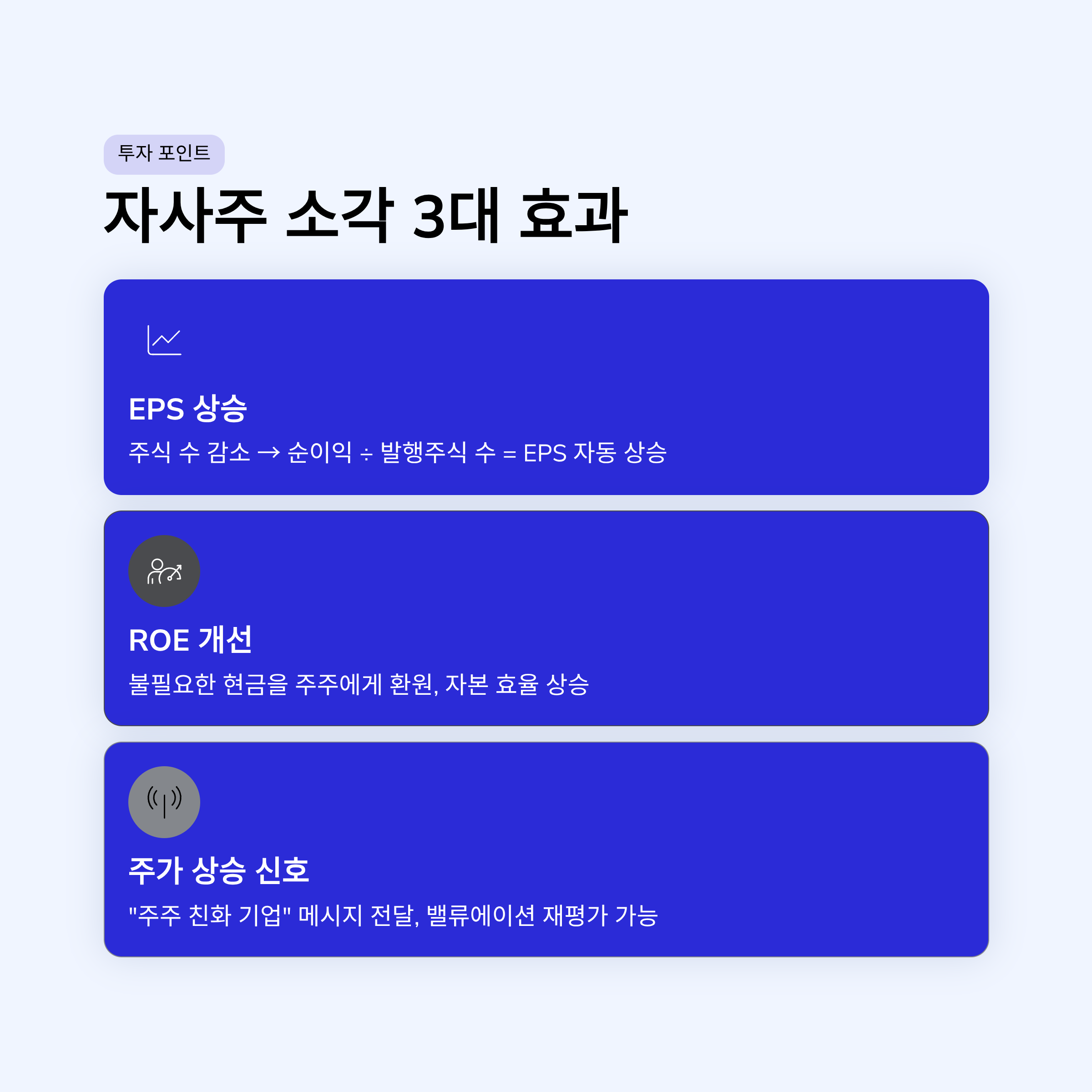 👉 주식 수가 줄어들면서 1주당 이익(EPS)이 자동 상승합니다.