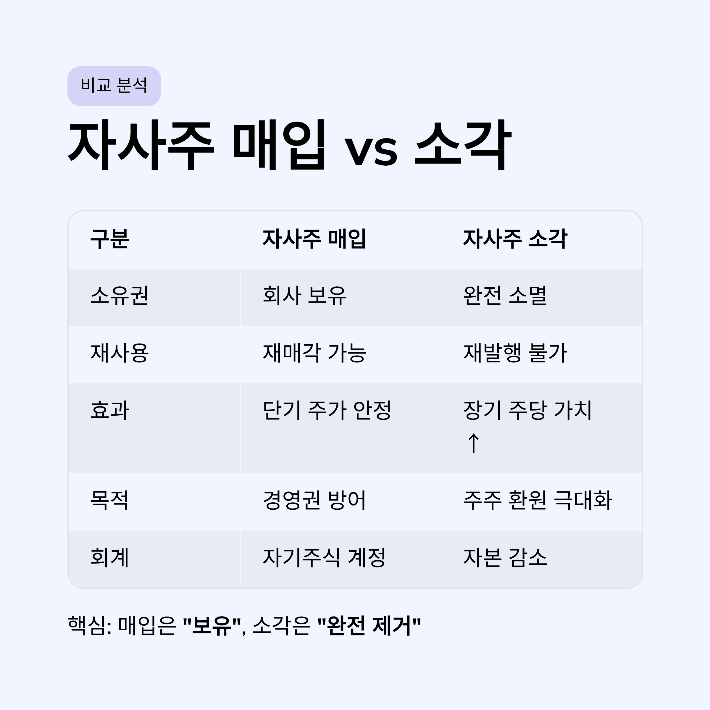 자사주 매입 vs 소각 차이 (핵심 비교)