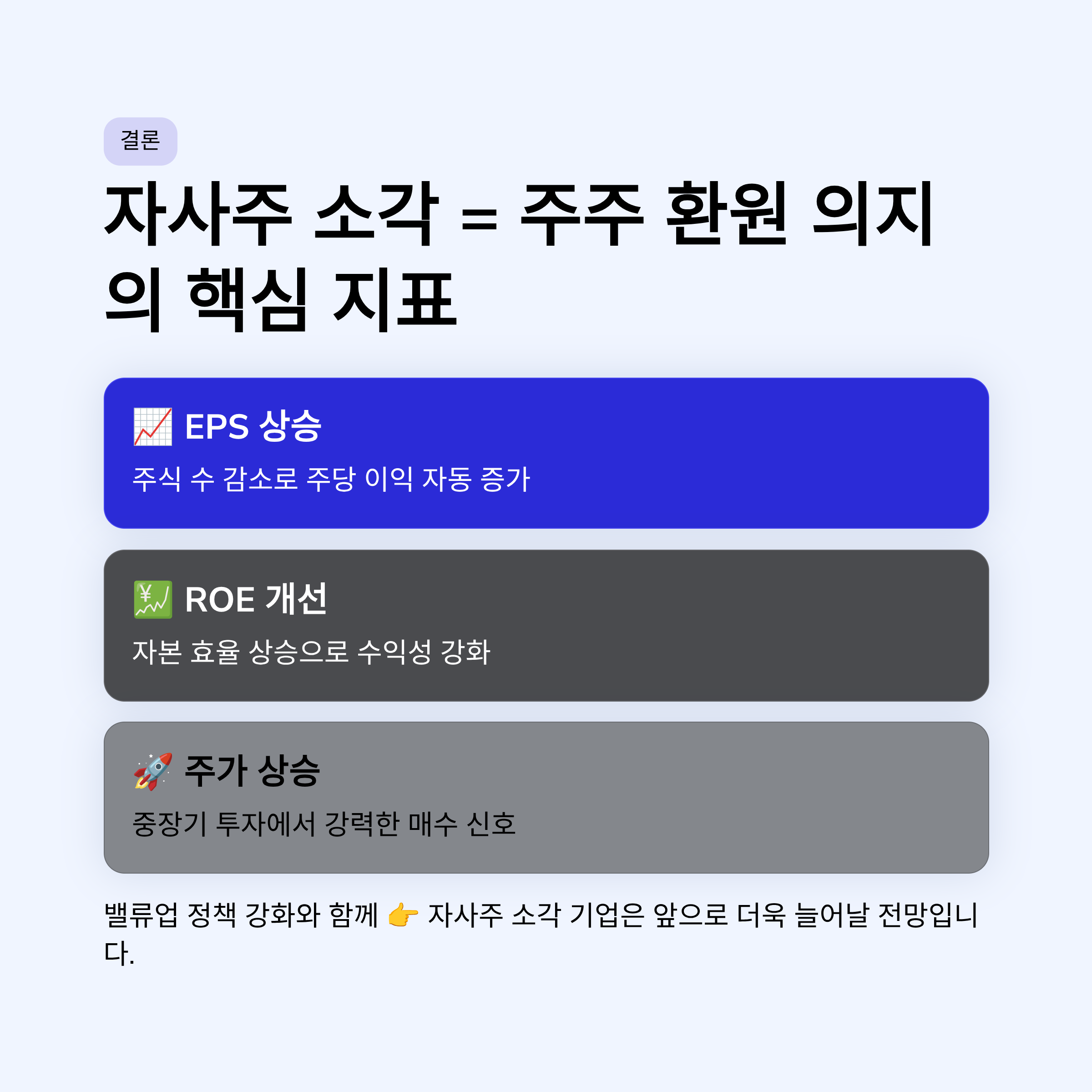 - 주식 수 감소 → EPS 상승 → 주가 상승 요인