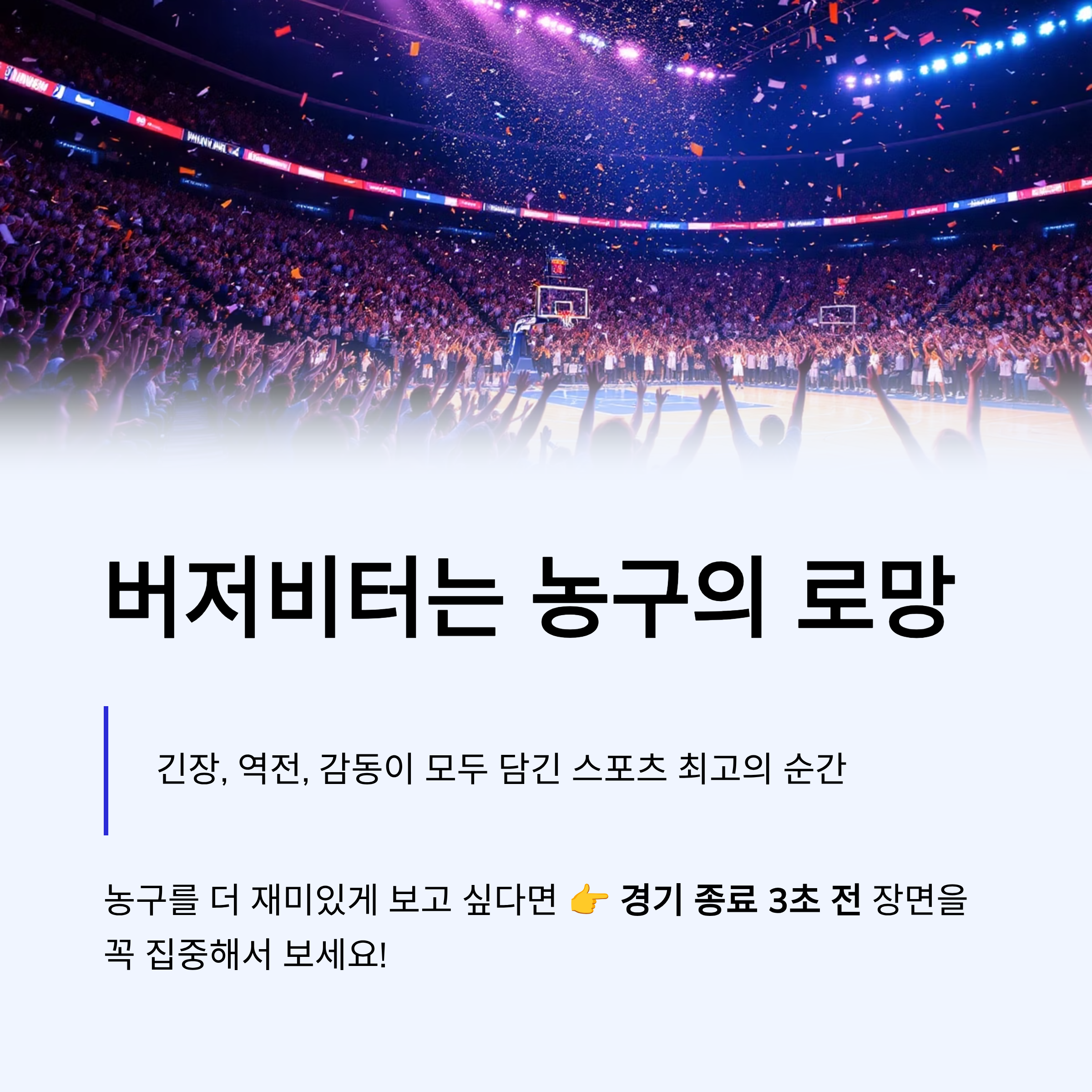 👉 그래서 팬들은 버저비터를 “농구의 로망”이라고 부릅니다.