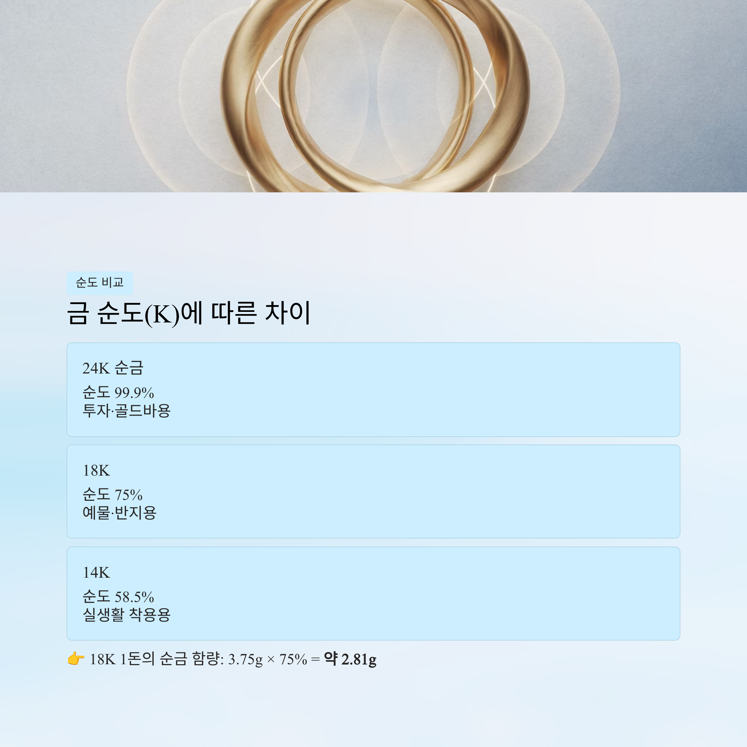 - 순도(K)에 따라 실제 금 함량 달라짐
