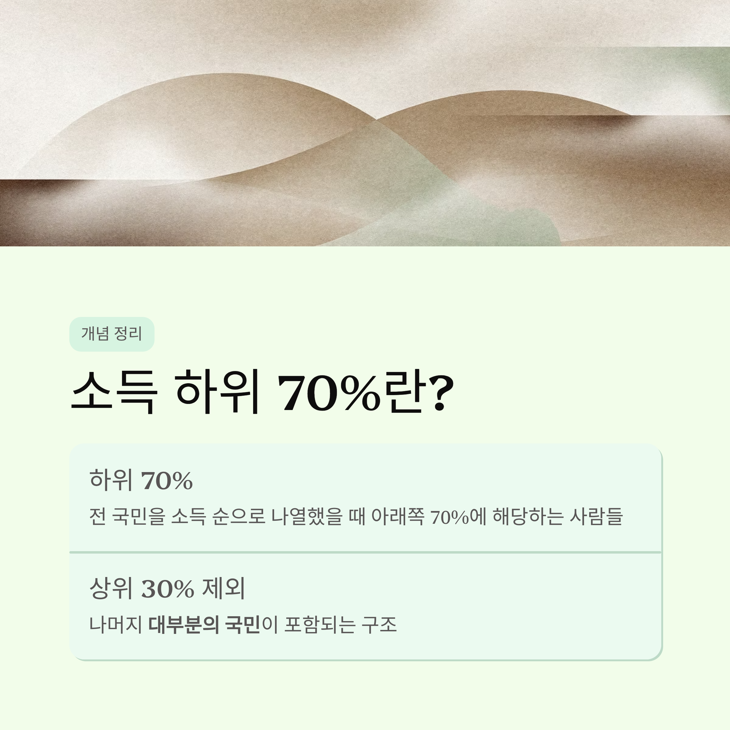 - 소득 하위 70% → 국민의 약 70%