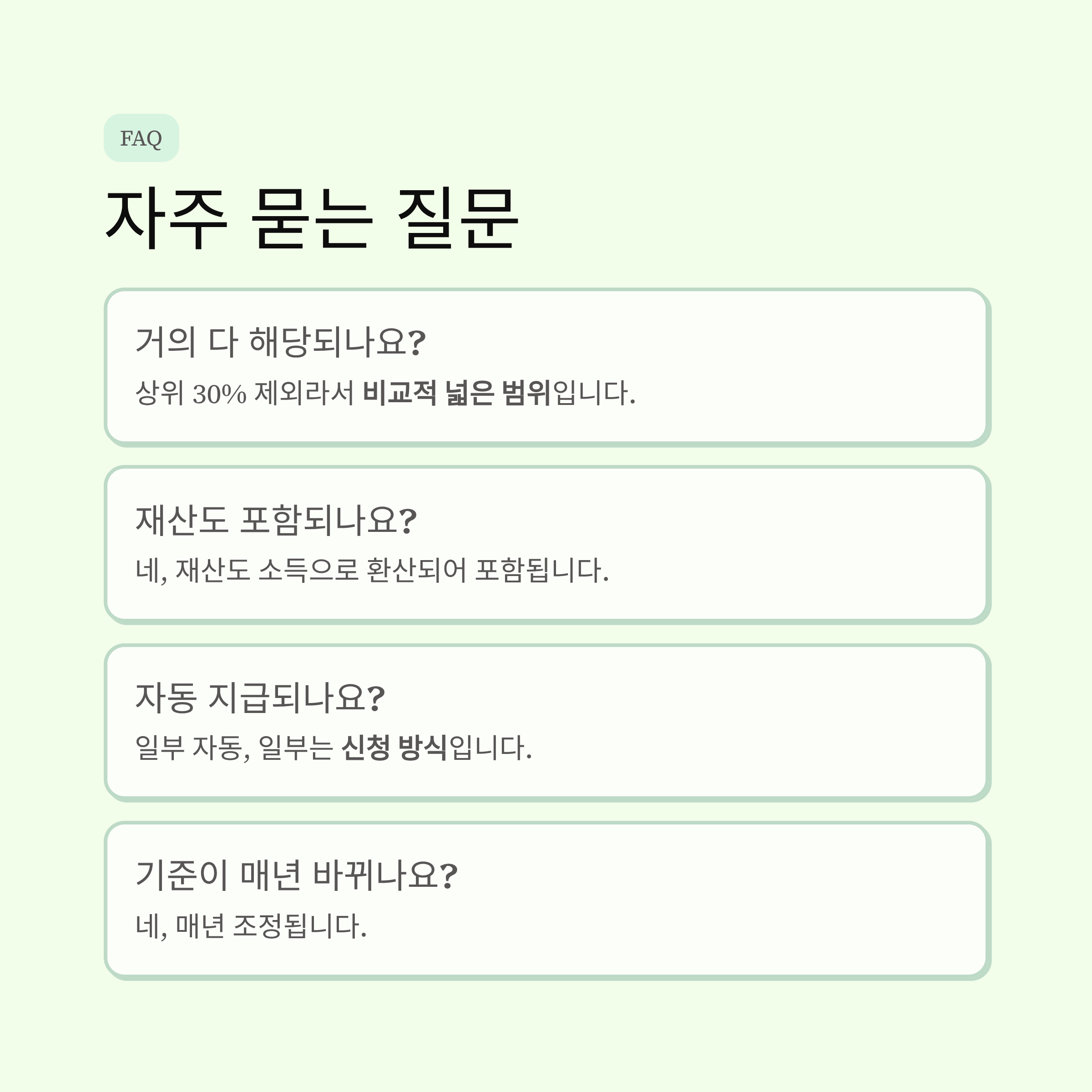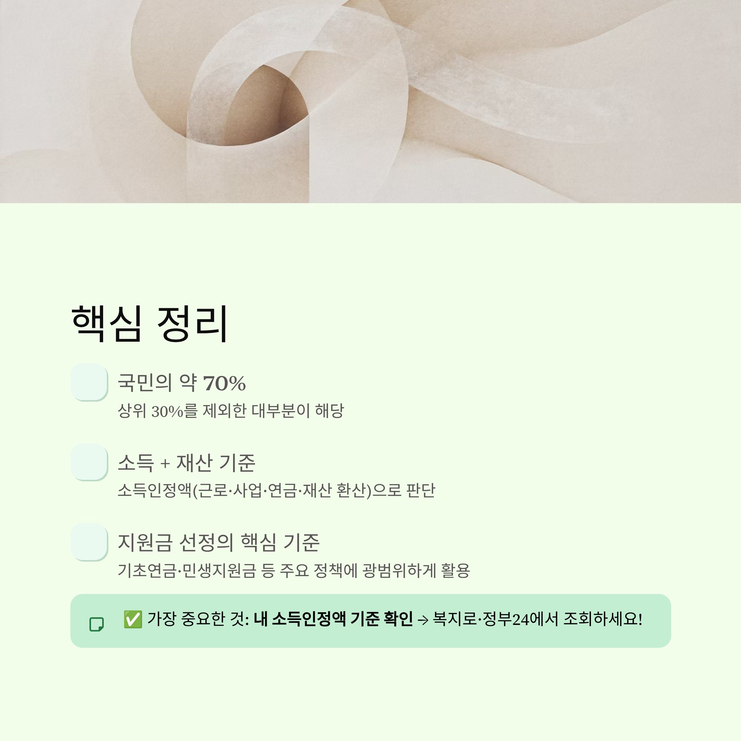 - 소득 + 재산 기준으로 판단